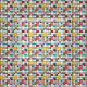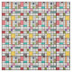 This fabric has a mid-century modern design of a grid of black lines with squares and rectangles in retro colours on a field of white.