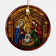 This profoundly beautiful round ceramic ornament features the Nativity Scene—the Holy Family of Mary, Joseph, and the Christ Child—rendered in a rich, warm stained glass style. The scene glows with golden light emanating from the Star of Bethlehem above the stable, highlighting the figures' halos and drapery. With its striking colors and reverent subject, this piece is an ideal religious Christmas gift, a beautiful Baptism keepsake, or a timeless addition to your own holiday traditions, serving as a reminder of the true meaning of Christmas.