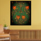 A beautiful, elegant art nouveau stained glass floral design in orange and green.