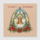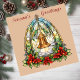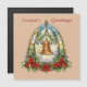 Beautiful stained glass window Christmas bell with poinsettias and holly.