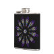 A lovely stained glass pattern adorns this flask in dominant colours of purple, blue, yellow and black. Twelve abstract feathers circle a central mask to form a spiritual mandala design with a Native American sensibility.