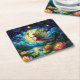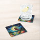 Stained Glass Moonlight Flight Fairy Square Paper Coaster