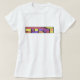This shirt says, "Namaste," a Sanskrit greeting that serves as a common greeting in South Asia in the style of colourful stained glass.