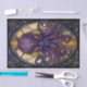 A stunning purple octopus in a stained-glass pattern style with many intricate details.