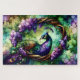 Stained Glass Peacock Floral Wreath Art Jigsaw Puzzle