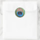 Stained glass peacock feather eye. Colourful peacock design with a stained glass effect. Run round sticker