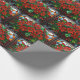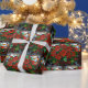 Stained Glass Red Poinsettia Flowers and Berries Wrapping Paper