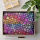 Bold and vibrant graphical stained glass square tiles, edged in a black outline.