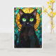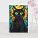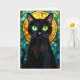 Stained Glass Style Charming Black Cat Green Eyes Card