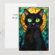 Stained Glass Style Charming Black Cat Green Eyes Card