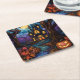 Stained Glass style haunted house in a scary wood, with the full moon overhead