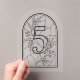 Faux Stained Glass Style Table Number Five. Please note: This is a stained-glass inspired printed design, not real stained glass. Modern stained-glass inspired table number 5, featuring bold cathedral-style leading lines in a clean, minimalist layout. Line colour and background can be customised to match your wedding palette. Printed on clear acrylic. Sold as individual table numbers, as the table number within the design is non-editable. Perfect for modern, minimalist, black-and-white, or cathedral-inspired weddings.