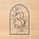 Faux Stained Glass Style Table Number Three. Please note: This is a stained-glass inspired printed design, not real stained glass. Modern stained-glass inspired table number 3, featuring bold cathedral-style leading lines in a clean, minimalist layout. Line colour and background can be customised to match your wedding palette. Printed on clear acrylic. Sold as individual table numbers, as the table number within the design is non-editable. Perfect for modern, minimalist, black-and-white, or cathedral-inspired weddings.