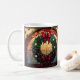 Beautiful stained glass style Christmas wreath to add cozy cheer to your coffee mug. Text can be changed. Image generated with AI by IveyCottage.