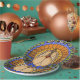 Premium quality sturdy paper plates featuring Leslie Sigal Javorek's original digital painting of a beautiful Craftsman-style stained glass window of a male turkey. See coordinating products at HoMeArts on Zazzle! #ZazzleMade