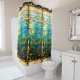 An art nouveau era stained glass window of starfish under the sea by tiffany. In colours of blue, teal, gold and brown. An elegant vintage design.