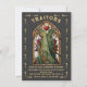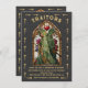 Tarot card inspired "TRAITORS" Murder mystery party invitations. Features a stained glass man and women in cloaks with weapons in a church like window frame with a light faux textured black background. Faux gold details. Perfect for Halloween, a night under the stars, cosmic, horoscope, goth or mystical magical night murder night fun. All wording can be changed. Faux gold. To make more changes go to Personalise this template. On the bottom you’ll see “Want to customise this design even further? Click on the EDIT using Design tool. From there you can change some of the fonts & some colours, move things around or delete what you need.