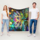 Stained Glass Vibrant Lotus Flower Fleece Blanket