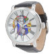 Bright and Colourful Stained Glass Design with Religious Figure. The watch face has Roman numerals. Gift for a church goer.