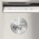 Stainless steel background with clean/dirty black & white contrast typography for dishwasher.