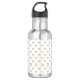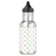 Stainless steel water bottle with a black cap and a colorful pattern of diagonal lines on a white background. The design is vibrant and modern.