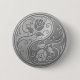 This beautiful yin yang design features two stylised tribal roses and has the appearance of being engraved into stainless steel. Intricate swirls decorate both sides of this traditional symbol creating a delicate pattern. The two flowers flow from the bottom of the teardrop on either side with leaves growing from the stems. Metallic textures and the silver colour give the design a strong steel look. This unique yin yang makes a stunning and stylish button design.