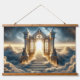 The polyester fabric displayed many wrinkles and several sharp creases throughout. At the bottom of the tapestry, I noticed a bulge in the fabric because it was not pulled tight enough before being connected to the wooden boards. It took me over an hour to spay water on the tapestry before putting it on an ironing board where I used a warm iron over a polyester cloth to remove the wrinkles and creases in the material. I was able to get out the wrinkles and creases that made that tapestry look as beautiful as its picture.