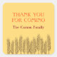 Turn your thanksgiving foodstuff or bake goods into delightful party favours with the help of these Thanksgiving theme favour stickers. Design feature a row of wheat stalks against a golden yellow background. Personalise with your greeting and name. Thanksgiving is about abundance and gratitude. Simply attach stickers to food boxes, wrapped cookies, paper bags, jam jars or bottles and delight your dinner guests by the end of the night. Want to add flair and decorate your dinner table the easy way? Select a larger sticker size and use them to hold rolled up napkins.