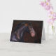 Taking from traditional portraits, this painting of a black stallion, done in deep browns and blacks, takes a slightly deconstructed direction. The tight rendering of the stallion's muzzle and eyes is counterpointed by the looseness of the mane and neck. Taking this further, the background begins as a traditional dark backdrop, yet reveals a slight unfinished quality to the textures there.