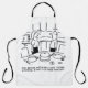 Funny apron with a cooking theme joke. A woman is standing motionless in her kitchen having prepared dinner. She explains to her husband that the recipe said "Stand after cooking"! Funny cookery cartoon gift for a cook or chef.