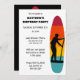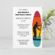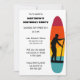 These paddle boarding themed party invitations are easy to customise with your party details. They're perfect for throwing parties for paddle boarders or for other special events. They feature an illustration of a SUP or stand up paddle board depicted in vibrant sunset colours with a silhouette illustration in black of someone paddle boarding. The graphic is set against a white background with all of your party details in black lettering. The reverse side has a matching graphic against a black background.