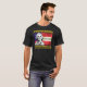 I give wanted to give this a 4 instead of a 5 because these Basic DARK T0shirts run unexpectedly SLIM or Narrow. Which is great if you do not have a potbelly, but I have a paunch. It isn't the shirt's fault that I've got a beer belly. The design and shirt itself is a quality cotton shirt. The color is more of a deep purple, but still a very pretty color. The Basic DARK T-shirts run a bit SLIMMER than the Basic Ts. The neck is a fraction narrower (or seems to be narrower) also. I'm a paunchy middle-aged woman and my neck is 12 inches (31cm) thick and the neckline fell about the same as in the photo of the man, and I had the desire to tug it a bit. So if you're a thick necked man or like loose shirts, be aware these are slimmer shirts. Once I get rid of my lockdown paunch it'll look great. The shirt washed well in cold water with no apparent bleeding. We don't have a dryer, so it hung dry. Did not shrink. Love the colors and the design. The design looks smaller on my shirt than it does on the model on-line. But still, it looks good on the shirt. The printing looks as it does on the model, just the size seems fractionally smaller. Washed garment in cold water, hung dry and design appeared unaffected.