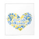 Folk art illustration heart and lettering in Ukrainian flag colours and ethnical pattern