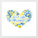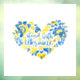 Folk art illustration heart and lettering in Ukrainian flag colours and ethnical pattern