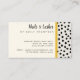 A Dalmatian print business card with black spots on a cream background and a pop of mustard yellow.