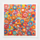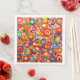 An abstract design composed of colorful circular shapes covers this paper napkin.