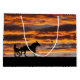 Standardbred Trotting Racehorse At Sunset, Water Bottle. Digital Art. Silhouette of standardbred horse and driver jog at sunset. Fully customizable; make it your own.