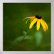 A photograph of a Black-eyed Susan in a garden, surrounded by green plant leaves of the summer.