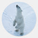 A beautiful shot of a polar bear standing on its hind legs in the snow.
