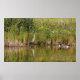 Canadian geese chasing away a heron.