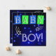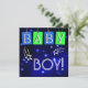 Announce your new little star's birth arrival into the world with these cute starry announcements with cool shooting stars on a midnight blue sky. Each letter of the word "Baby" hangs on a blue or green paper tag in white text that adds to this unique announcement. Room on the back for all your custom information about your baby on the same starry background.
