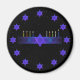 A purple and blue fractal image, with a Magen David (Star of David), in the middle, as a Chanukkah menorah. The motif is repeated as a border of 12 stars. The candles have been lit.