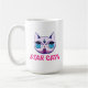 Droid big eyes head of angry cat drifts in space and looks like Empire stormtroopers shuttle with pink lettering Star Cats