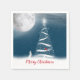 White star Christmas tree on blue with a glowing full moon, cute bunny and red cardinal.