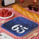 Bright stars in a blue galaxy star pattern for 65th birthday party.