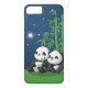 A pair of cute pandas staring at the stars of the night. The bears are just humbly eating bamboo while enjoying the night light by the twinkle of shimmering stars. Perfect for anyone who love pandas.
