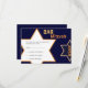 A modern navy blue and orange Bar Mitzvah RSVP that features the words Bar Mitzvah and the Star of David.