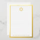 Elegant, vertical note cards featuring a simple Star of David at the top, and custom name or other text at the bottom. Along the edge is a solid border in silver, gold or rose gold foil on a white or custom colour background. Change fonts and colours with the design tool. Minimal and elegant stationery design.