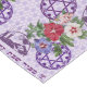 Magen David motifs mixed with flowers and "Koved Shabbes Kodesh" in Hebrew, in blue, violet, orchids and hibiscus flowers.