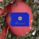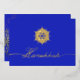 Simple and spectacular, this foil card has the Star of David superimposed over a solitary snowflake on the front with flowing “Hanukkah” in holiday script. The reverse has a greeting, and your signature. The background has more uniquely designed snowflakes, fading around the edges.